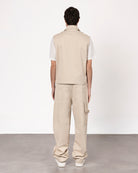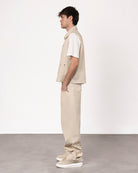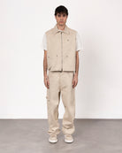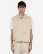 Gilet in bull dal design essenziale e resistente, perfetto per un look casual e grintoso. Realizzato in tessuto robusto, garantisce durata e comfort. La chiusura frontale con zip aggiunge praticità e un tocco moderno. Ideale da indossare sopra t-shirt o felpe, si abbina facilmente a jeans o pantaloni cargo per un outfit di carattere.