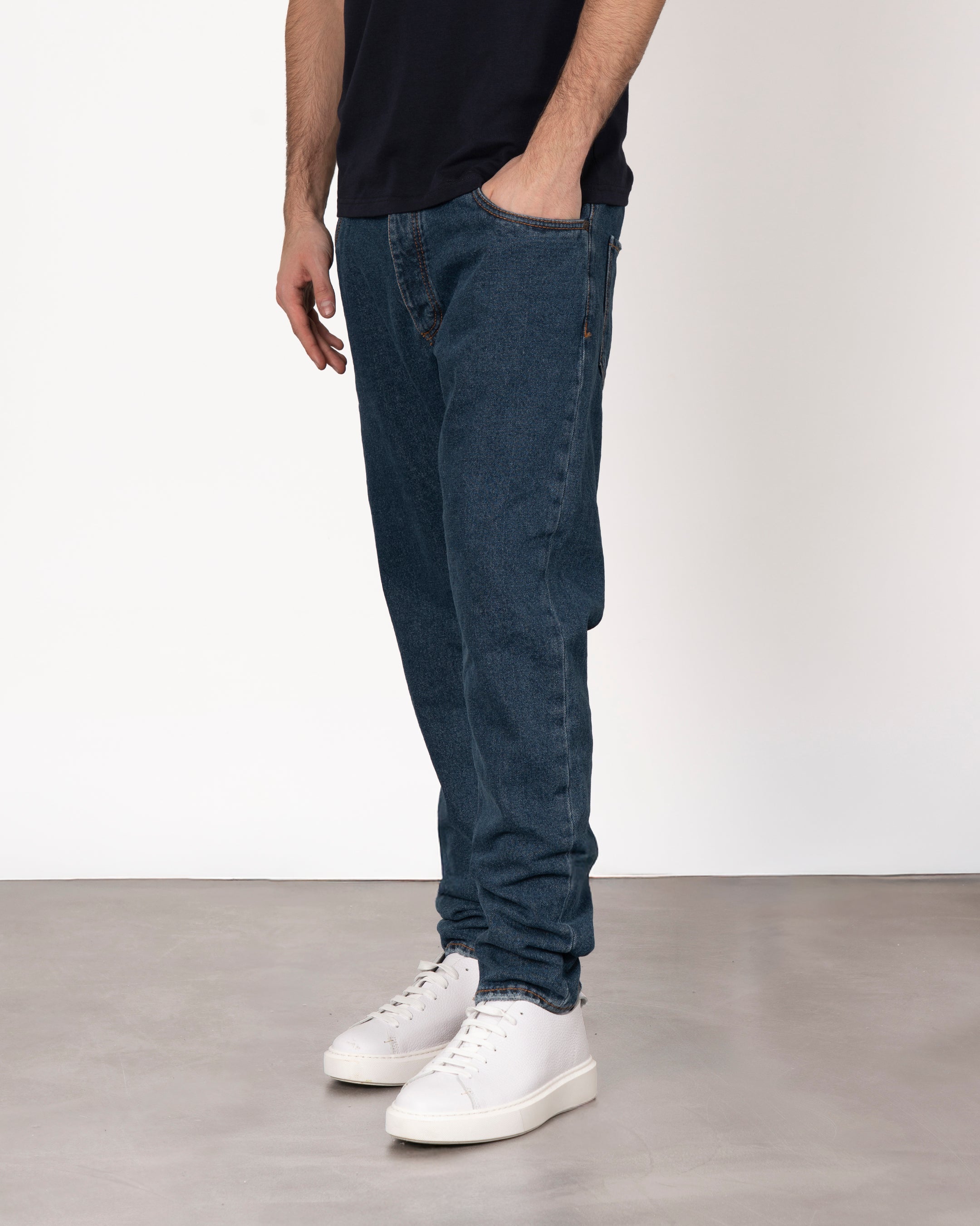 I jeans Boston nel lavaggio medio sono un perfetto equilibrio tra stile classico e contemporaneo. Realizzati in tela fissa, mantengono un’anima autentica e robusta, con una tonalità denim versatile adatta a ogni occasione. Vestibilità asciutta e struttura solida per un look pulito e deciso.
