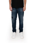 Questo jeans unisce stile e comfort grazie a un leggero cavallo basso e una percentuale di elasticità (3-4%) che garantisce libertà di movimento senza perdere la forma. La vestibilità è comoda lungo la gamba e si assottiglia verso il fondo per un effetto slim che valorizza la silhouette. Perfetto per chi desidera un look rilassato senza rinunciare al tocco moderno.