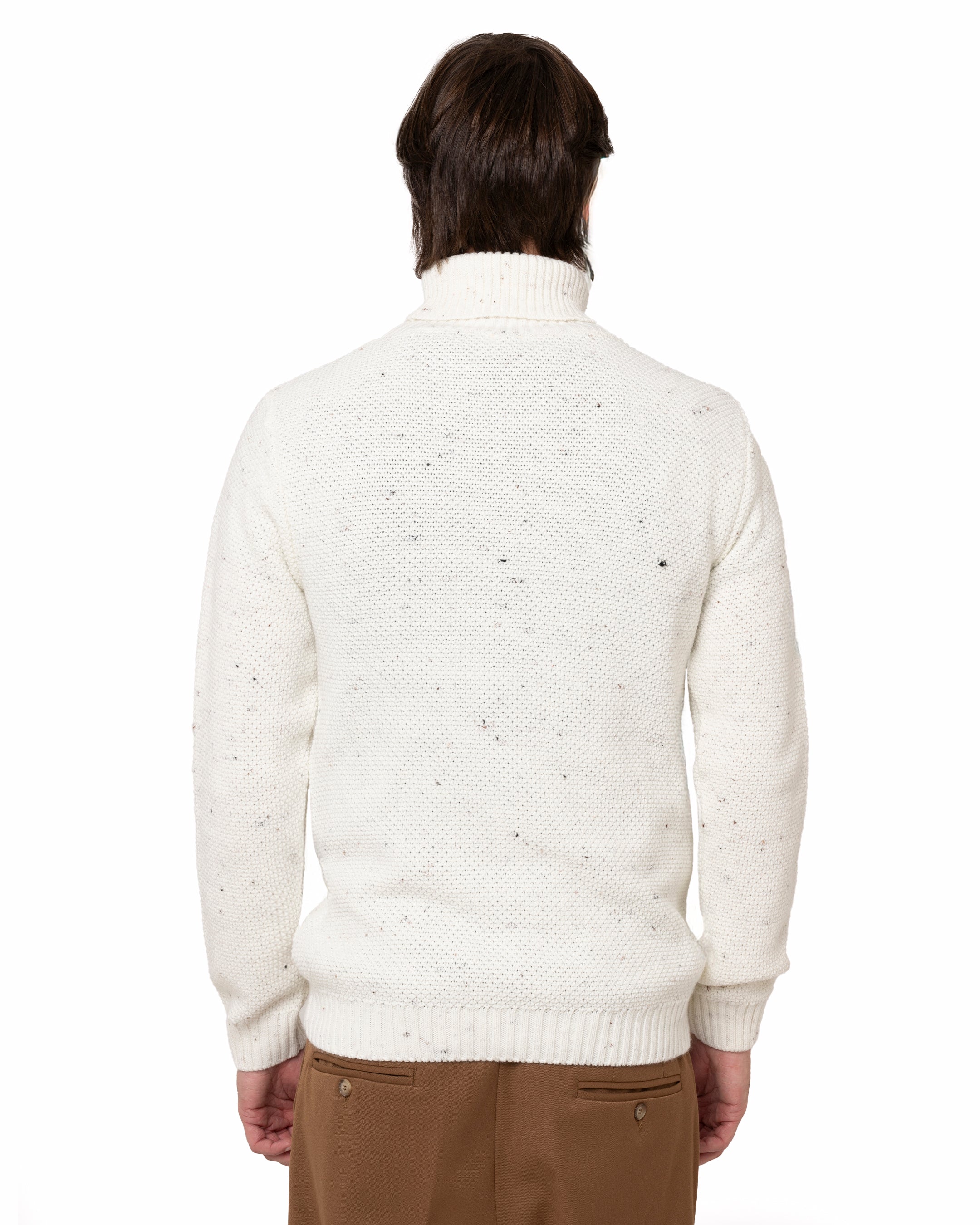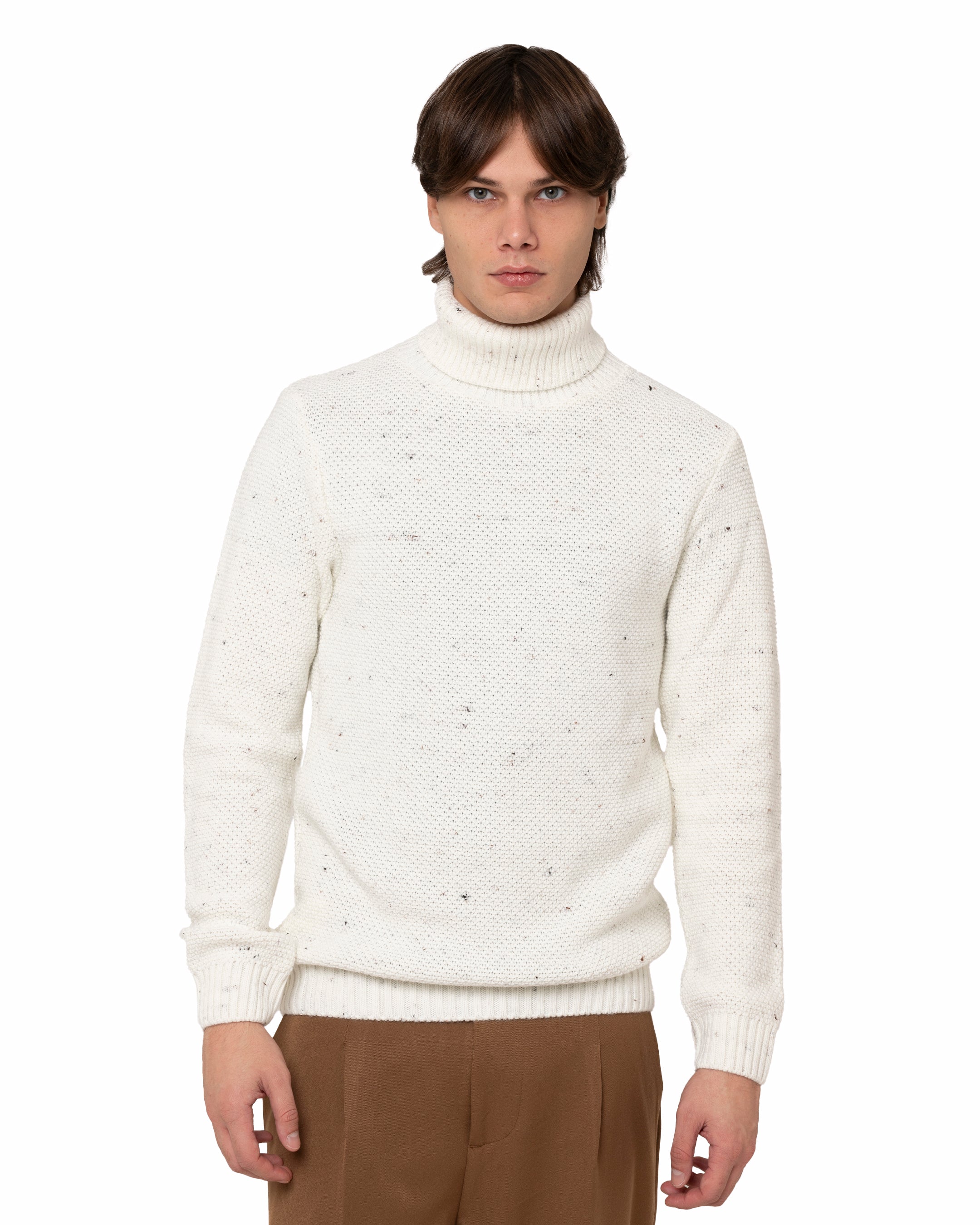 Maglione a collo alto in un elegante tessuto sale e pepe, perfetto per un look sofisticato e caldo. La sua trama delicata e il design versatile lo rendono ideale per la stagione fredda, unendo comfort e stile.