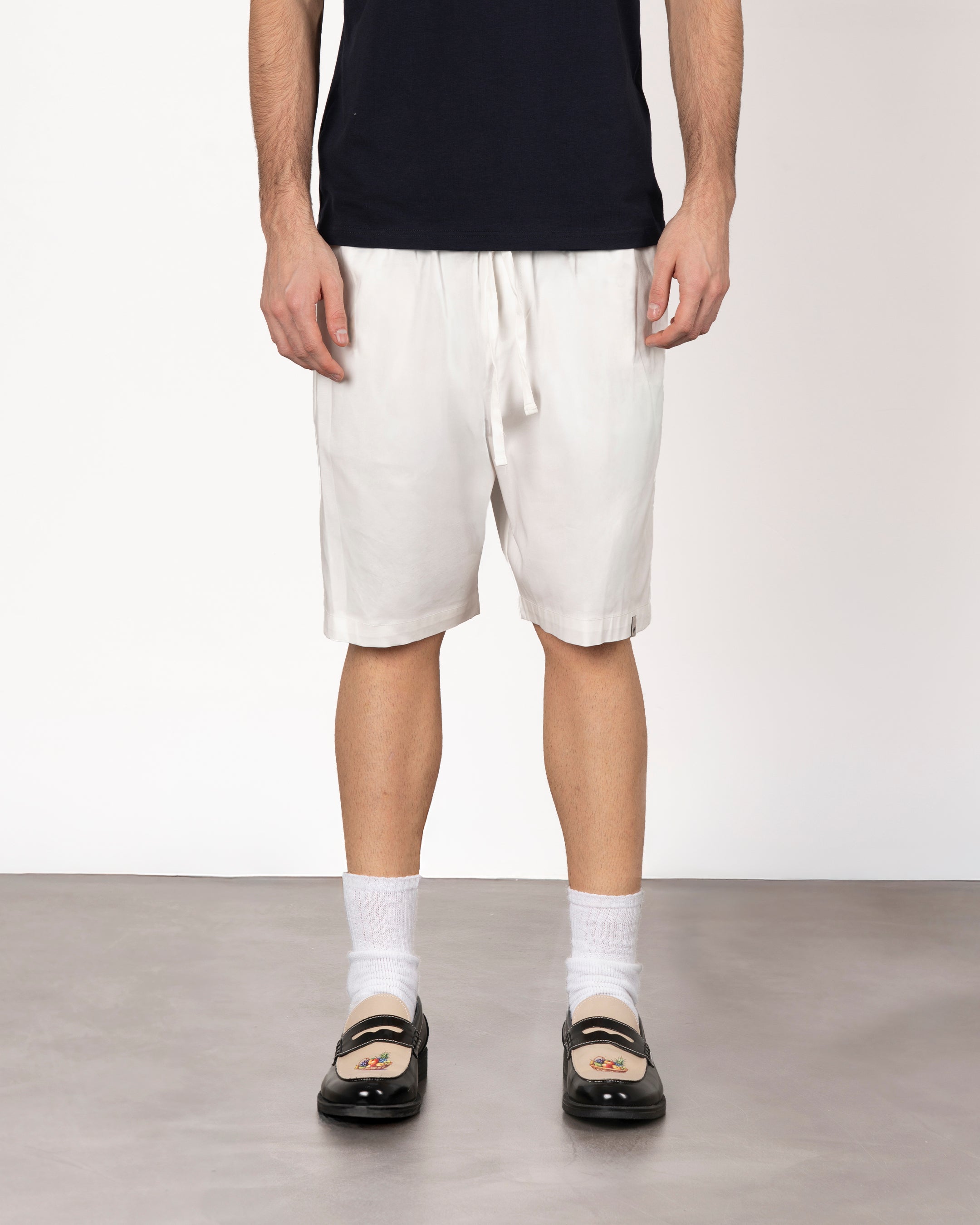 Gli shorts Bowling sono caratterizzati da una vestibilità regular e un design essenziale ma curato. Dotati di laccio in vita per un fit regolabile, sono realizzati in tessuto leggero e confortevole, ideali per affrontare l’estate con uno stile rilassato e contemporaneo.
