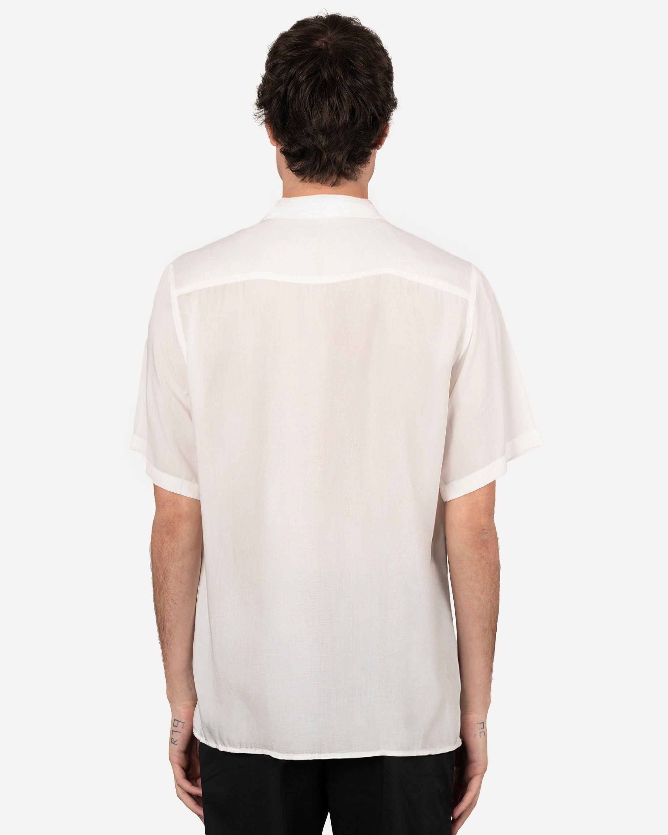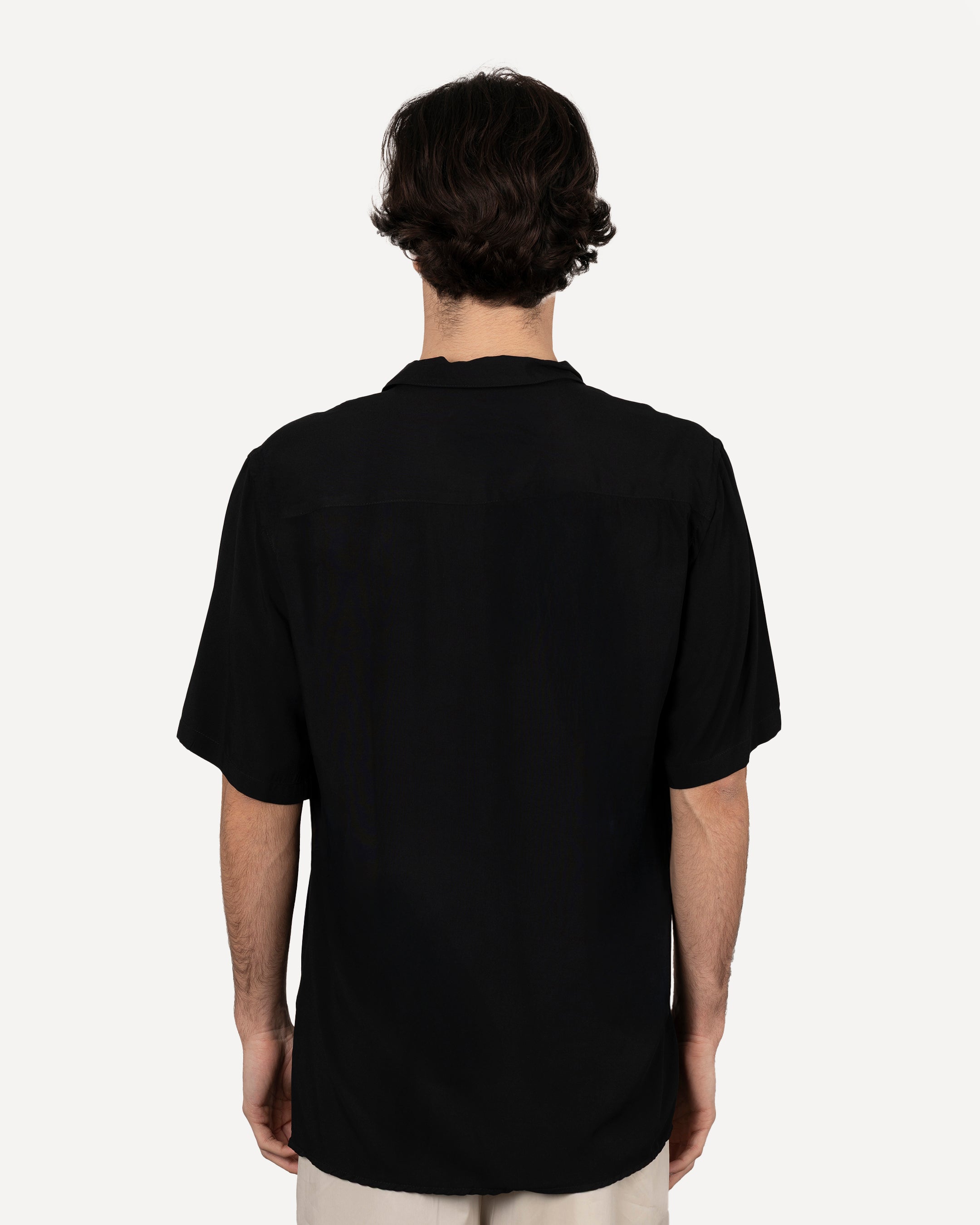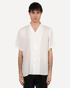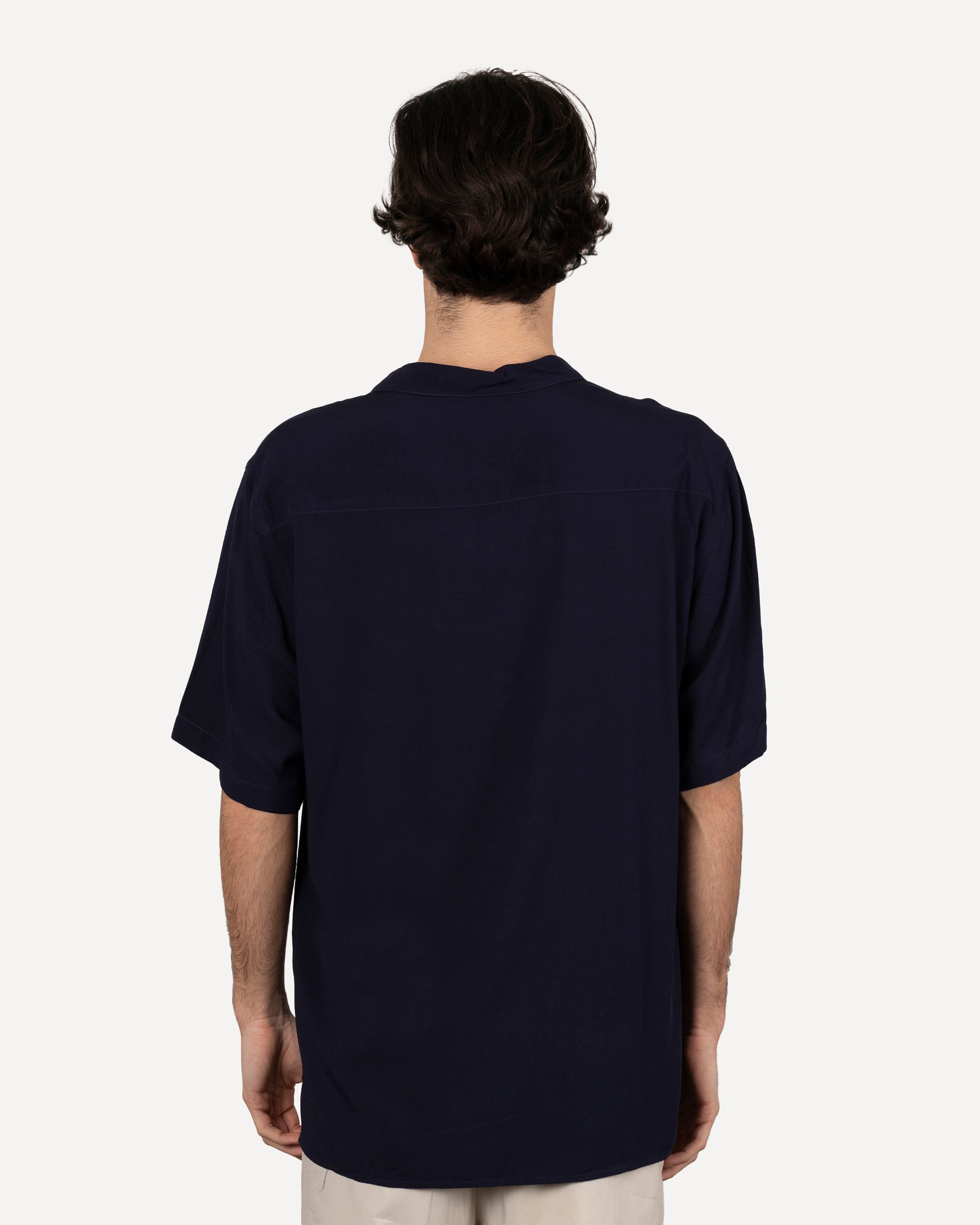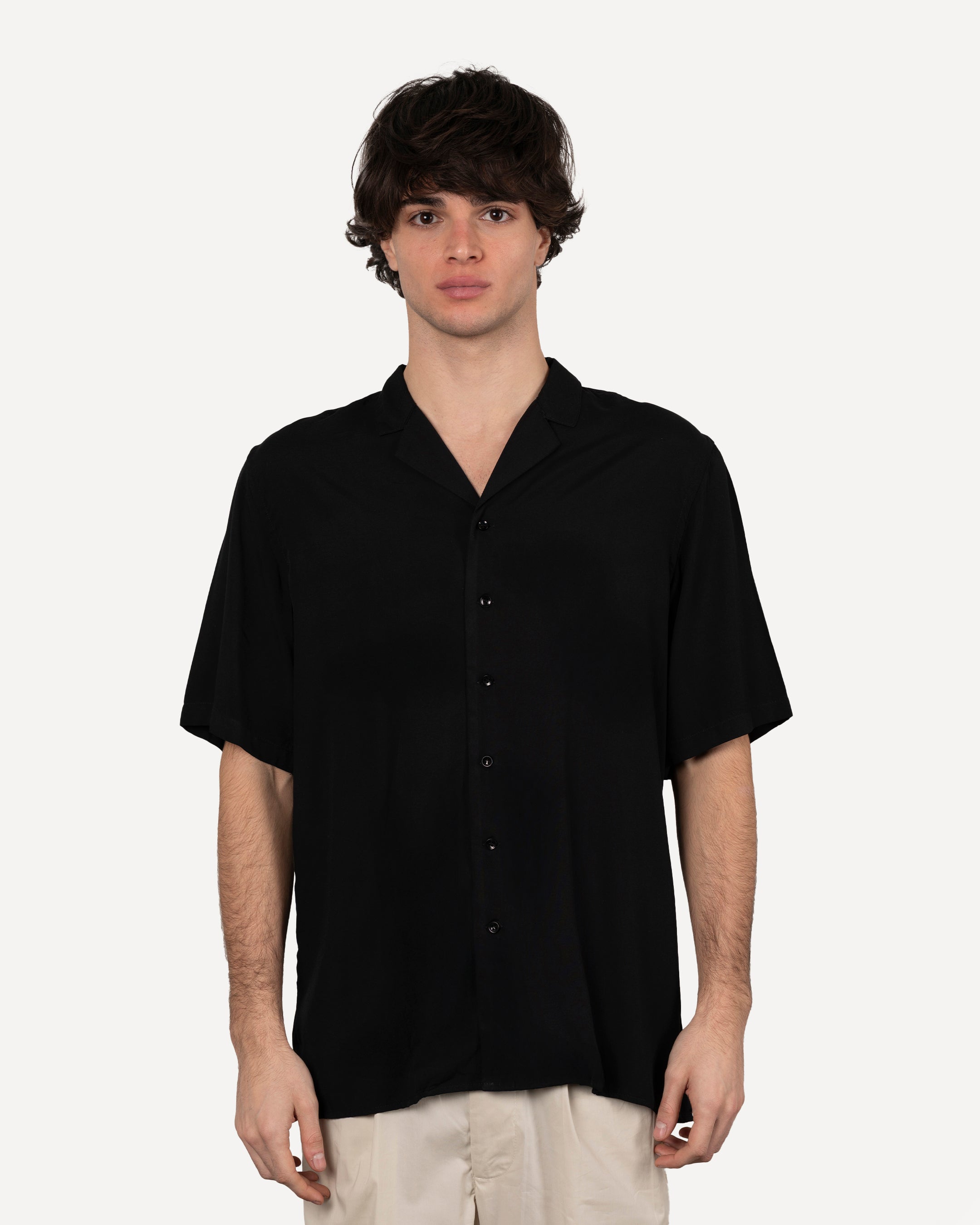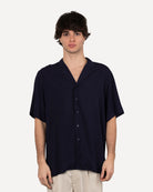 Camicia a mezza manica in viscosa con collo bowling, leggera e fluida per un comfort ottimale. Perfetta per un look casual e rilassato, con un tocco di stile senza sforzo.