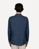 Camicia a manica lunga in chambray con collo Koreano, leggera e versatile. Il tessuto morbido e traspirante garantisce comfort e un look raffinato ma informale. Perfetta per outfit casual chic o abbinata a una giacca per un tocco più ricercato.