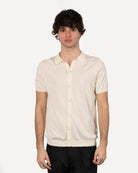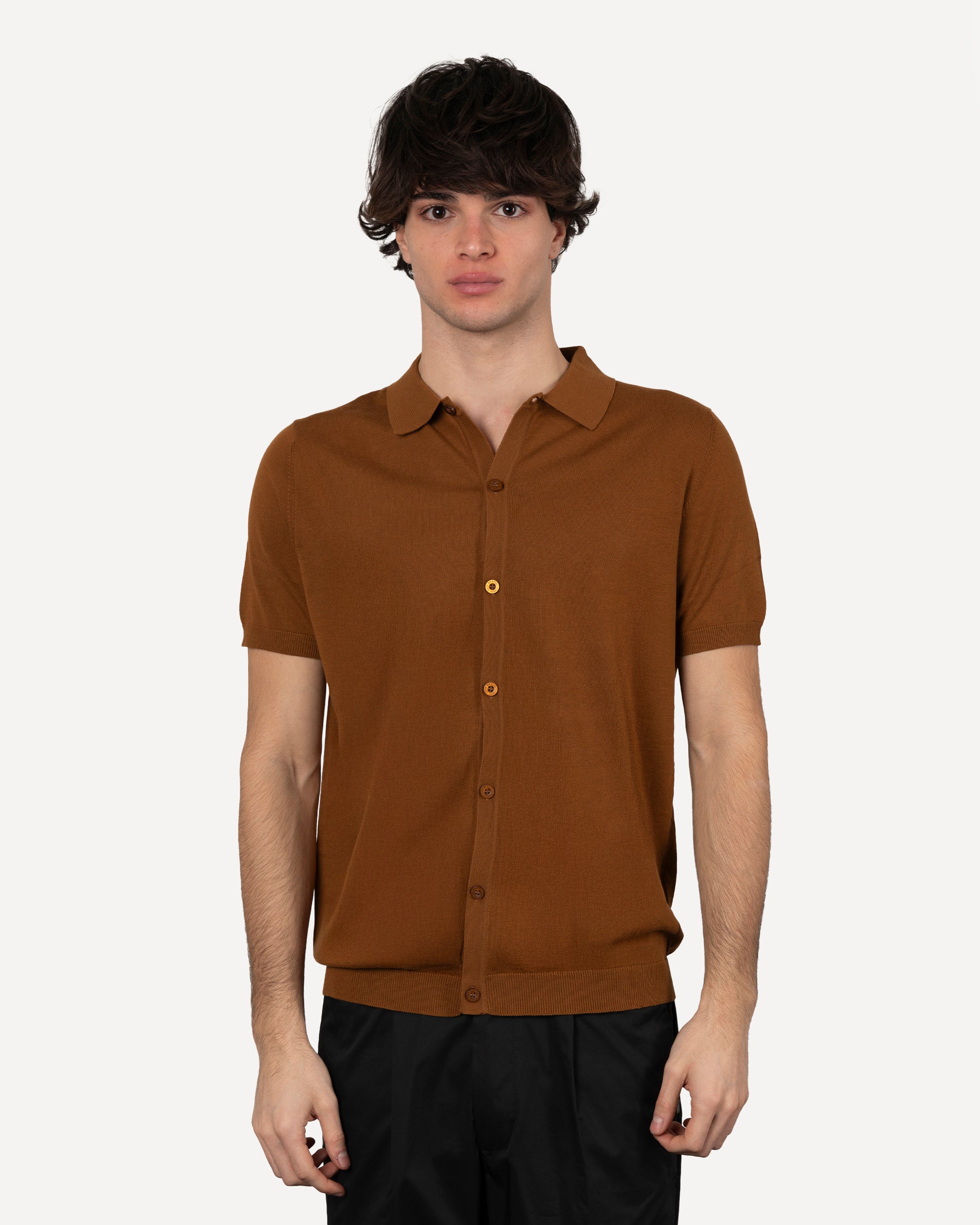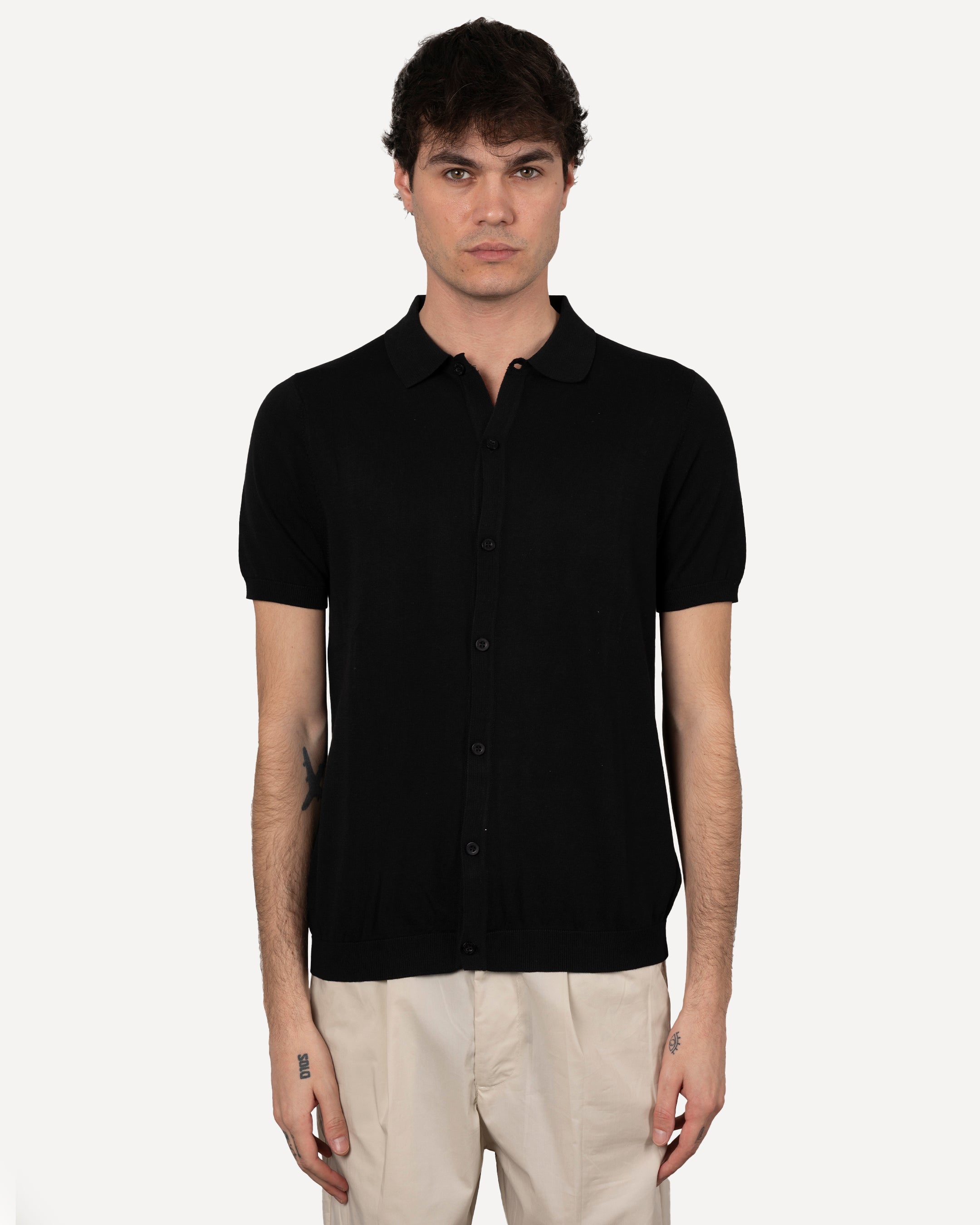 Polo in filo, leggera e traspirante, ideale per un look raffinato. Caratterizzata da una chiusura con bottoni a cardigan, unisce eleganza e praticità. Vestibilità confortevole e dettagli curati la rendono perfetta per ogni occasione, dal casual al formale.